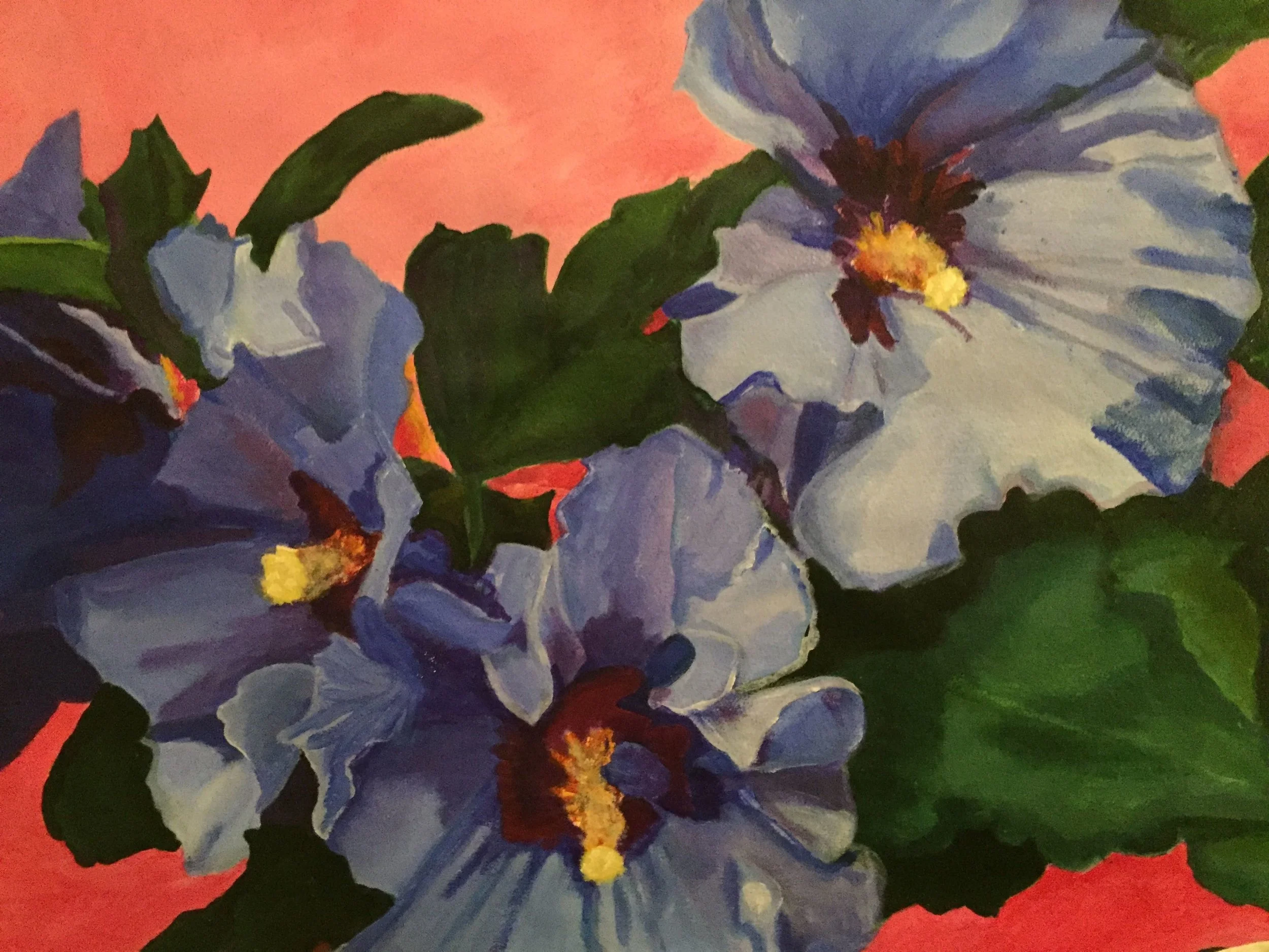 Hibiscus syracuse Blue Bird2016ca 2x3' acrylic on paper $3000